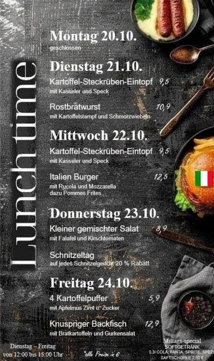 Liebe Gäste, wir haben täglich einen Mittagstisch.